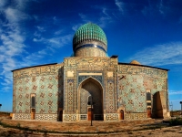Ведь восьмиконечные звезды – это сложные, многотонные конструкции из металла, покрытые отделочными материалами, прячущих металл. Четыре входа в здание символизируют четыре стороны света. Внутреннее убранство помещений Дворца также выполнены в туркменском стиле. В состав центра входят шесть залов для торжественных регистраций брака, каждый из которых получил свое название, три свадебных зала для проведения праздничных мероприятий, два из которых рассчитаны на 500 и один на 1000 мест. На девятом этаже Дворца - в центральной части ʺшараʺ - размещен Золотой зал для бракосочетаний, названный ʺШамчырагʺ. Во Дворце также размещено семь банкетных залов, 36 магазинов, два кафе, пункты оказания всех необходимых свадебных услуг, салоны свадебной одежды, свадебного оформления автомашин, проката ювелирных изделий, национальных украшений, фотосалон и салон красоты, гостиница на 22 комфортабельных номера. На третьем и четвертом этажах - административные помещения и архив. Под зданием находится закрытая автостоянка на 300 машин. По уже сложившейся традиции новоиспеченные молодожены после акта бракосочетания, высаживают деревце в расположенном в ансамбле с дворцом парке, как символ зарождения новой семьи.