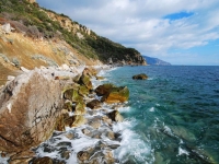 Справа, примерно на середине обрыва, есть удобный спуск. Из-за поворота неожиданно глянет на вас огромный, темный зев пещеры Аджи-Коба. Здесь проходило детство человечества, отсюда начинали поиск зверя палеолитические охотники. Затерялся их след в такой дали тысячелетий, в приложении к которой даже слово ʺдревнийʺ кажется сиюминутным неологизмом. А старая пещера, наверное, помнит своих сыновей, снова и снова перебирает события, которых так много осело в ее археологической памяти. Другие дороги позвали питомцев Аджи-Кобы, которыми никогда уже не вернуться в страну детства...